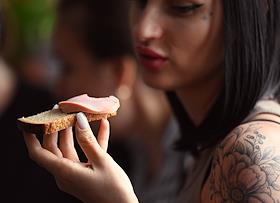 Пресс-тур на Лыткаринский мясоперерабатывающий завод, входящий в группу компаний "РУЗКОМ". Продукция завода в дегустационном зале.