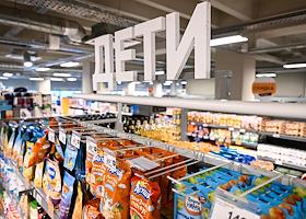 Магазин торговой сети "Пятерочка". Жанровая фотография. Отдел детского питания.