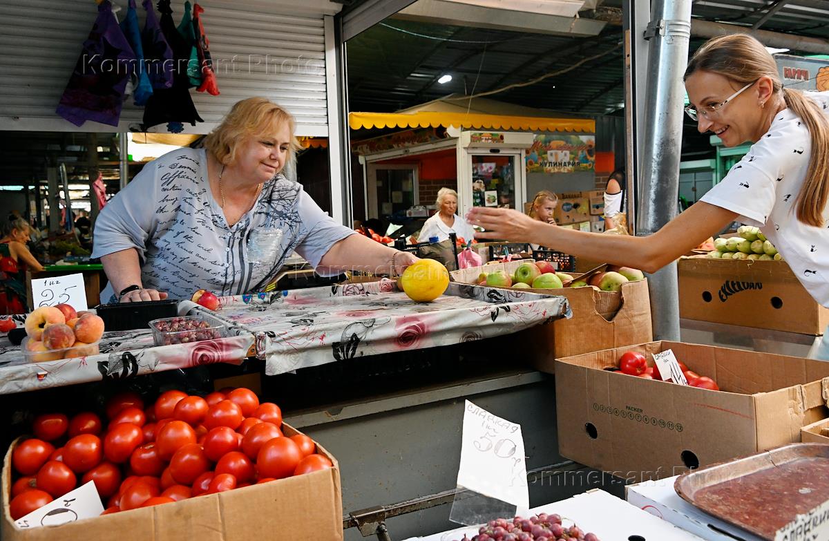 Ситуация в Мелитополе. Жанровая фотография. Продажа овощей и фруктов на уличном рынке.