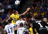 Мир-Российская Премьер-Лига (РПЛ) 2022/2023. 1-й тур. Матч между командами "Динамо М" (Москва) - "Ростов" (Ростов-на-Дону) на стадионе "ВТБ Арена - Центральный стадион Динамо им. Льва Яшина". Игрок команды "Динамо" Федор Смолов (слева) и игрок команды "Ростов" Хорен Байрамян (справа) во время матча.