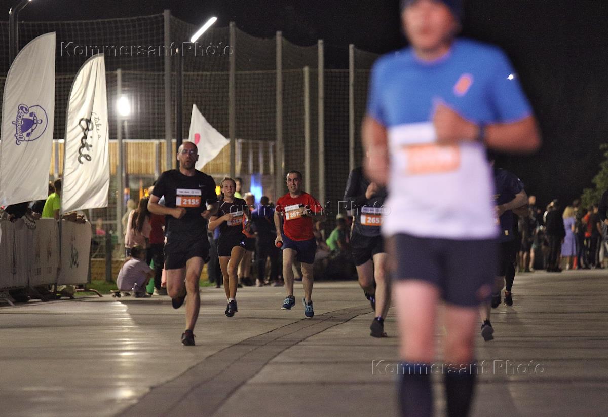 Ночной забег на дистанции 5 и 10 километров "Ночная Казань". Жанровая фотография. Участники во время забега.