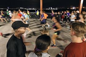 Ночной забег на дистанции 5 и 10 километров "Ночная Казань". Жанровая фотография. Участники перед началом забега.