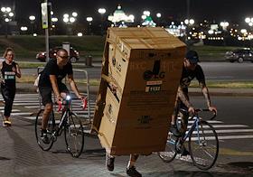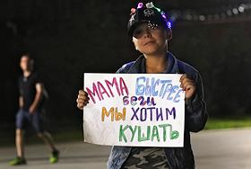 Ночной забег на дистанции 5 и 10 километров "Ночная Казань". Жанровая фотография. Ребенок с плакатом во время забега.