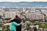 Виды Красноярска. Жанровая фотография. Люди на смотровой площадке на Караульной горе.
