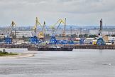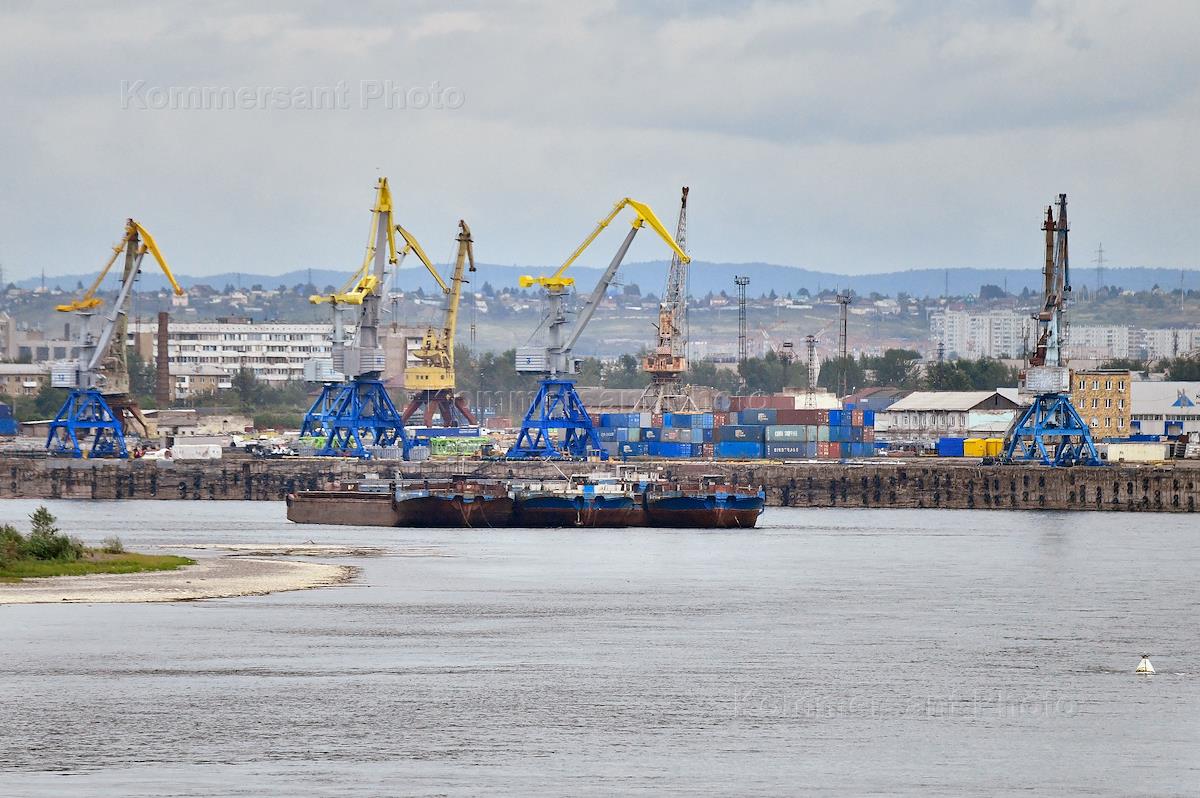 Виды Красноярска. Красноярский речной порт. Подъемные краны в порту.