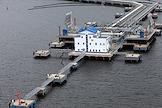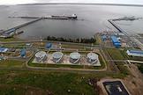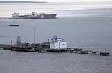 Специализированный морской нефтеналивной порт "Приморск", конечная точка магистральных нефтепроводов Балтийской трубопроводной системы, расположенный на материковой части пролива Бьёркезунд Финского залива Балтийского моря. Жанровая фотография.