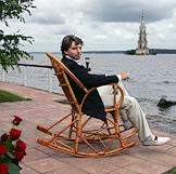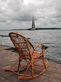 "Праздник Роз" в "Усадьбе у реки". Пустое плетенное кресло-качалка на берегу.