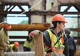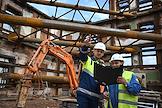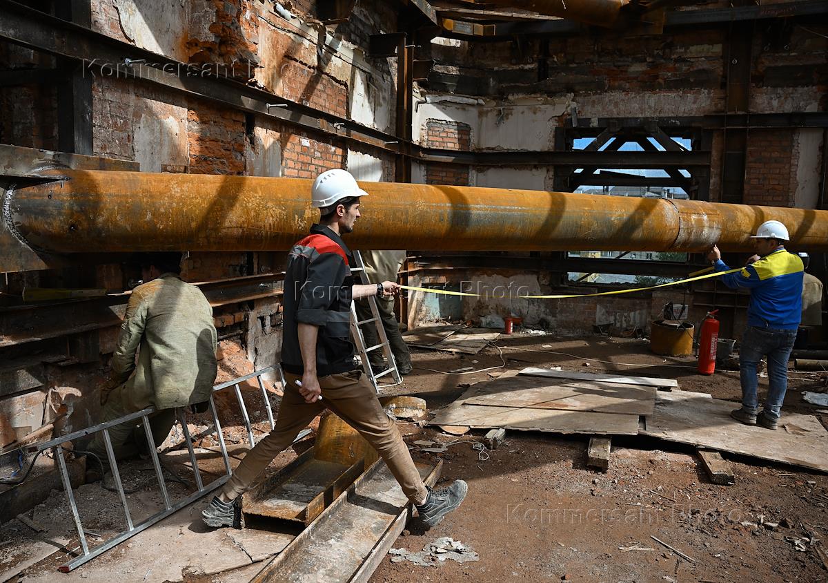 Строительство Клубного дома "Чистые Пруды" управляющей компании Sminex. Жанровая фотография. Рабочие на строительной площадке.