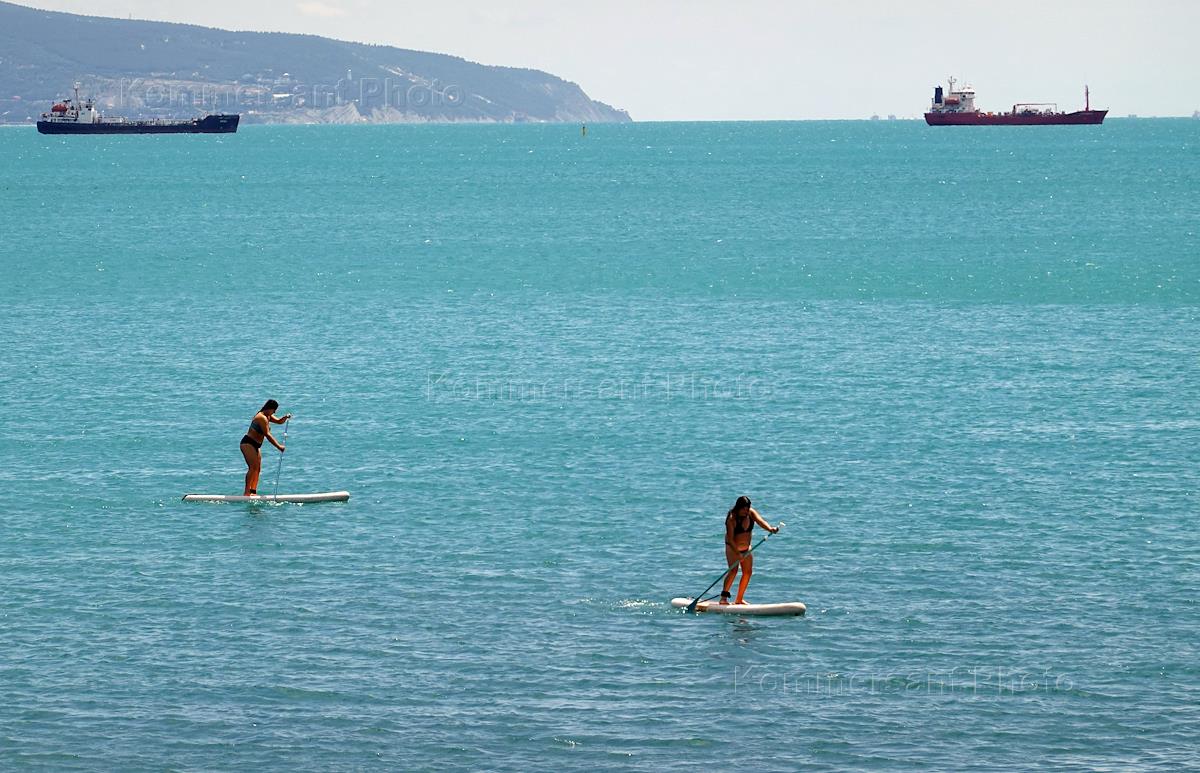 Виды Новороссийска. Жанровая фотография. Отдыхающие во время сапсерфинга.