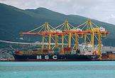 Виды Новороссийска. Жанровая фотография. Контейнеровоз в морском порту.