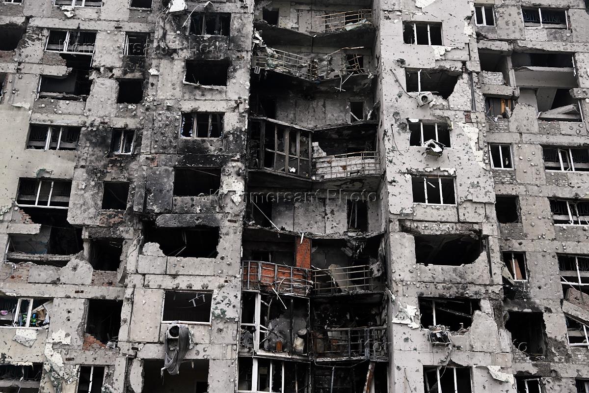 The situation in Mariupol. Destroyed residential high-rise building, after the fighting.