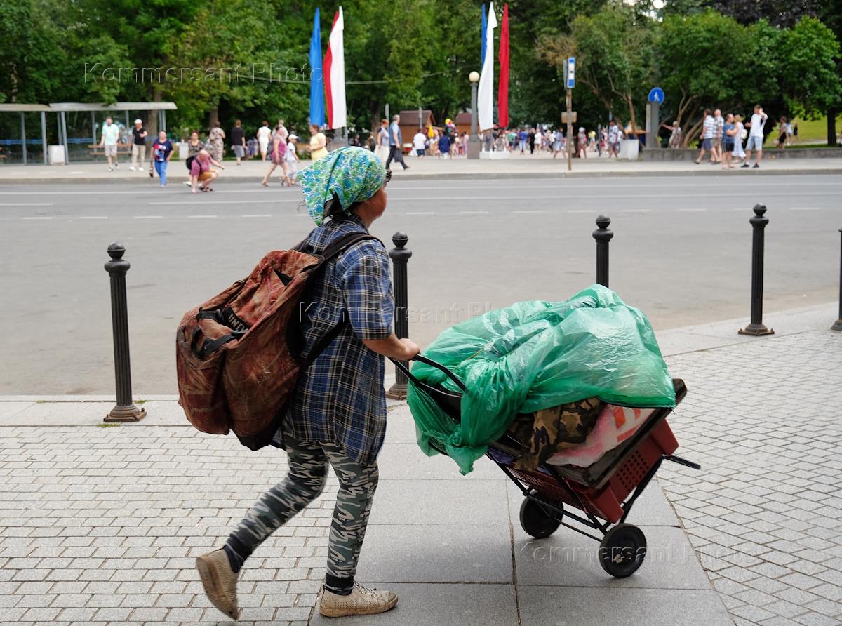 Виды Пскова. Жанровая фотография. Женщина везет тележку.