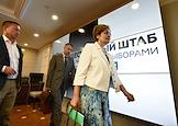 Первое заседание Общественного штаба по наблюдению за выборами в Москве в 2022 году, в Московском парламентском центре. Председатель Московской городской избирательной комиссии Ольга Кириллова (справа) после окончания заседания.