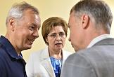 Первое заседание Общественного штаба по наблюдению за выборами в Москве в 2022 году, в Московском парламентском центре. Председатель Московской городской избирательной комиссии Ольга Кириллова (в центре) после окончания заседания.