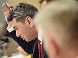 Первое заседание Общественного штаба по наблюдению за выборами в Москве в 2022 году, в Московском парламентском центре. Руководитель Общественного штаба по контролю и наблюдению за выборами в Москве 2022 года Вадим Ковалев (слева) во время заседания.