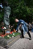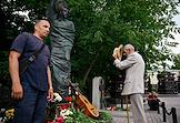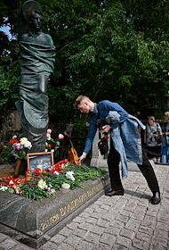 День памяти актера, музыканта Владимира Высоцкого на Ваганьковском кладбище. Возложение цветов к памятнику на могиле Владимира Высоцкого.