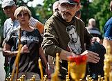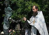День памяти актера, музыканта Владимира Высоцкого на Ваганьковском кладбище. Настоятель храма Воскресения Словущего на Ваганьковском кладбище игумен Пётр (Еремеев) во время заупокойного богослужения у могилы Владимира Высоцкого.