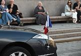 Открытый фестиваль искусств "Черешневый лес". Церемония закрытия фестиваля. Балет Бориса Эйфмана "Чайка. Балетная история" на новой сцене Большого театра. Жанровая фотография. Флаг Франции на автомобиле посла Франции в России Пьера Леви.