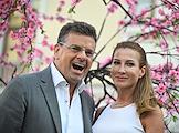 Открытый фестиваль искусств "Черешневый лес". Церемония закрытия фестиваля. Балет Бориса Эйфмана "Чайка. Балетная история" на новой сцене Большого театра. Директор по развитию компании "Боско ди Чильеджи" Константин Андрикопулос и его супруга Ольга перед началом спектакля.
