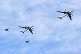 Генеральная репетиция парада, посвященного Дню Военно-морского флота (ВМФ) России в акватории реки Невы. Воздушная часть парада. Самолеты в небе.