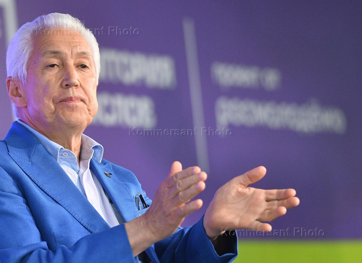 Всероссийский молодежный образовательный форум "Территория Смыслов" на территории мастерской управления "Сенеж". Панельная дискуссия с лидерами фракций Государственной думы (ГД) России "Роль молодёжи в современных реалиях: стратегические направления". Руководитель фракции "Единая Россия" в ГД России Владимир Васильев во время дискуссии.