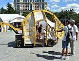 Фестиваль науки и технологий Geek Picnic в Парке искусств "Музеон" . Жанровая фотография. Участники во время парада фантастического электротранспорта.