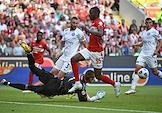 Российская Премьер-Лига (РПЛ). МИР - Чемпионат России по футболу 2022/2023. 3 тур. Матч между командами "Спартак" (Москва) - "Оренбург" (Оренбург) на стадионе "Открытие Арена". Вратарь команды "Оренбург" Евгений Гошев (в центре) во время матча.