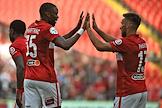 Российская Премьер-Лига (РПЛ). МИР - Чемпионат России по футболу 2022/2023. 3 тур. Матч между командами "Спартак" (Москва) - "Оренбург" (Оренбург) на стадионе "Открытие Арена". Игроки команды "Спартак" Кристофер Мартинс Перейра (слева) и Александр Соболев (справа) во время матча.
