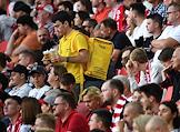Российская Премьер-Лига (РПЛ). МИР - Чемпионат России по футболу 2022/2023. 3 тур. Матч между командами "Спартак" (Москва) - "Оренбург" (Оренбург) на стадионе "Открытие Арена". Болельщики команды "Спартак" на трибуне стадиона во время матча.