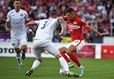 Российская Премьер-Лига (РПЛ). МИР - Чемпионат России по футболу 2022/2023. 3 тур. Матч между командами "Спартак" (Москва) - "Оренбург" (Оренбург) на стадионе "Открытие Арена". Игрок команды "Спартак" Мацей Рыбус (справа) во время матча.