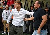 Российская Премьер-Лига (РПЛ). МИР - Чемпионат России по футболу 2022/2023. 3 тур. Матч между командами "Спартак" (Москва) - "Оренбург" (Оренбург) на стадионе "Открытие Арена". Главный тренер команды "Спартак" Гильермо Абаскаль (слева) и главный тренер команды "Оренбург" Марцел Личка (справа) во время матча.