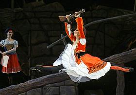Гастроли Красноярского государственного театра оперы и балета имени Д.А. Хворостовского, приуроченные к 60-летию со дня рождения Дмитрия Хворостовского, на сцене Государственного Академического Большого театра (ГАБТ). Московская премьера балета Цезаря Пуни "Катарина, или Дочь разбойника". Ведущий солист Марчелло Пелиццони во время спектакля.