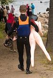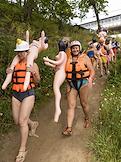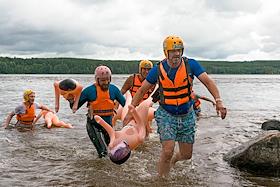 Заплыв "Bubble Baba Challenge – 2022" по Лосевскому порогу на надувных резиновых женщинах. Участники перед началом заплыва.