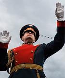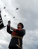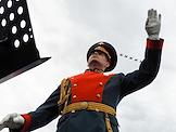 Главный военно-морской парад в честь Дня Военно-морского флота (ВМФ) России в Кронштадте. Дирижер военного оркестра во время воздушной части парада.