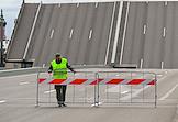 Главный военно-морской парад в честь Дня Военно-морского флота (ВМФ) России в акватории реки Невы. Перекрытый разводной мост во время парада.