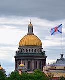 Главный военно-морской парад в честь Дня Военно-морского флота (ВМФ) России в акватории реки Невы. Жанровая фотография. Андреевский флаг на главном штабе ВМФ.