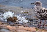 Жанровая фотография. Пятнистая серая чайка на берегу реки Невы.