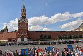 Участники праздничных мероприятий, посвященных 92-й годовщине создания Воздушно-десантных войск (ВДВ) России, на Красной площади. День ВДВ России отмечают 2 августа в день памяти пророка Илии, небесного покровителя Воздушно-десантных войск. Крестный ход участников мероприятий.