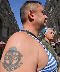 Праздничные мероприятия, посвященные 92-й годовщине создания Воздушно-десантных войск (ВДВ) России, на Красной площади. День ВДВ России отмечают 2 августа в день памяти пророка Илии, небесного покровителя Воздушно-десантных войск. Бывшие десантники во время мероприятий.