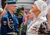 Участники праздничных мероприятий, посвященных 92-й годовщине создания Воздушно-десантных войск (ВДВ) России, на улице Ильинка. День ВДВ России отмечают 2 августа в день памяти пророка Илии, небесного покровителя Воздушно-десантных войск.