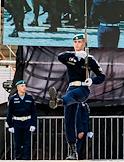Праздничные мероприятия, посвященные 92-й годовщине создания Воздушно-десантных войск (ВДВ) России, на Красной площади. День ВДВ России отмечают 2 августа в день памяти пророка Илии, небесного покровителя Воздушно-десантных войск. Жанровая фотография. Военнослужащие во время показательных выступлений.