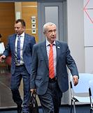 Пресс-конференция на тему "Внешние угрозы российскому суверенитету в период избирательной кампании и единого дня голосования 2022 года" в МИА "Россия сегодня". Заместитель председателя комитета Совета Федерации России по международным делам Андрей Климов (справа) перед началом пресс-конференции.