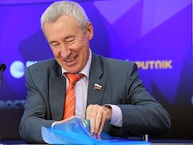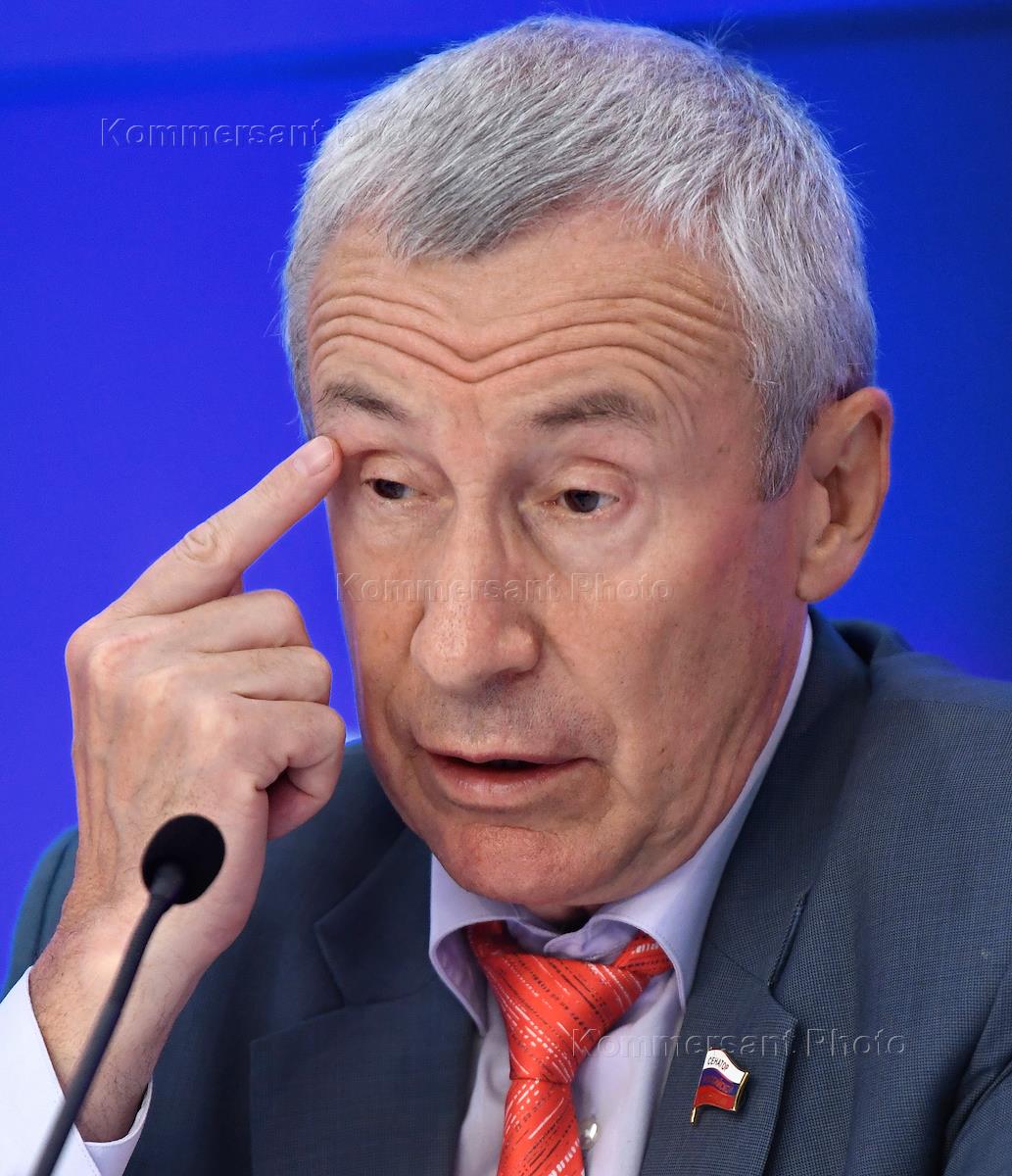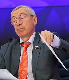 Пресс-конференция на тему "Внешние угрозы российскому суверенитету в период избирательной кампании и единого дня голосования 2022 года" в МИА "Россия сегодня". Заместитель председателя комитета Совета Федерации России по международным делам Андрей Климов во время пресс-конференции.