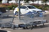 Работа пункта выдачи магазина "ИКЕА" в торговом центра "Мега". Жанровая фотография. Пустые тележки на площади у магазина.