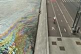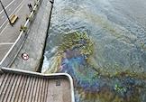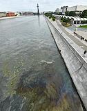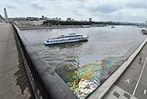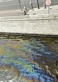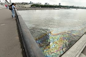 Пятно от нефтепродуктов площадью около 4,5 тысячи квадратного метра на поверхности Москве-реки в районе Крымского моста.