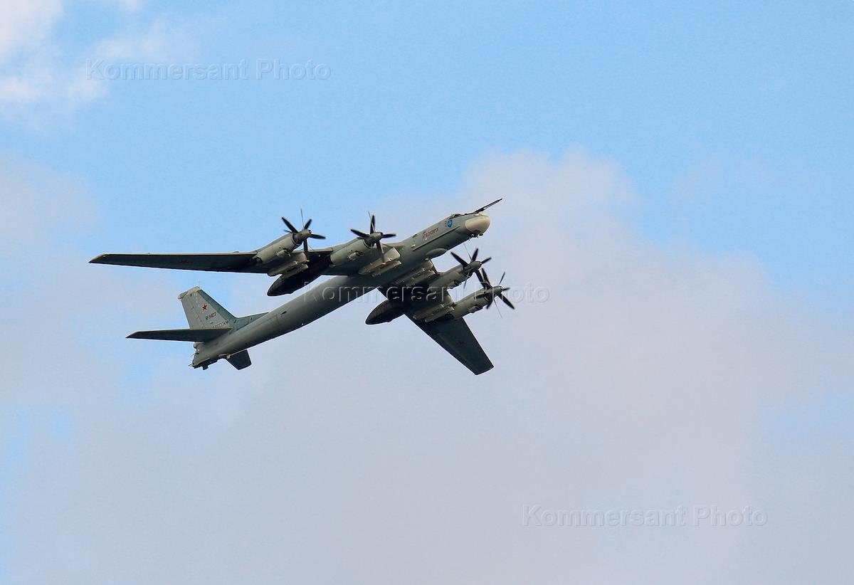 Авиационный праздник "Я выбираю небо", посвященный Дню Воздушного флота России. Выступление самолета дальней авиации в небе.