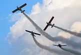 Авиационный праздник "Я выбираю небо", посвященный Дню Воздушного флота России. Выступление легкомоторных самолетов в небе.