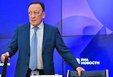 Президент Российского зернового союза Аркадий Злочевский во время пресс-конференции на тему: "Зерновая отрасль России в условиях санкций: актуальная ситуация и урожай – 2022" в МИА "Россия сегодня".