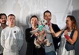 30-й российский кинофестиваль "Окно в Европу". Актеры Артем Яковлев (второй слева) и актриса Дарья Екамасова (в центре) перед началом показа фильма режиссера Алисы Ерохиной "Накануне".
