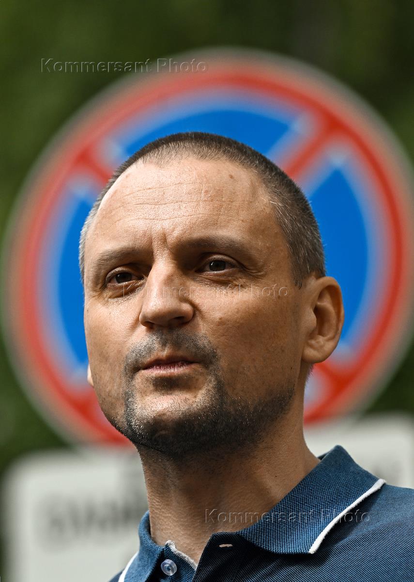 Встреча с избирателями депутатов фракций КПРФ в Государственной думе (ГД) России и Московской городской думе на тему "Протест против трехдневного и дистанционного электронного голосования (ДЭГ), против введения электронных списков избирателей" у здания Московской городской избирательной комиссии. Лидер движения "Левый фронт" Сергей Удальцов во время встречи.